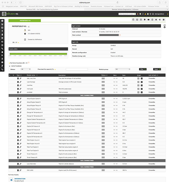 • Vidiwave's CANbus diagnostics solution uses automatic collect and PUSH scripts to report real-time information via 3G to the clients VidimonIQ web interface.