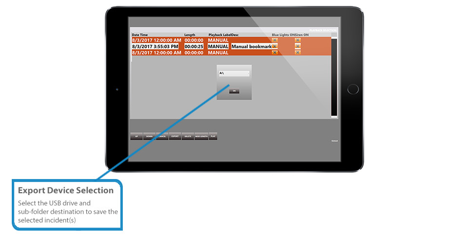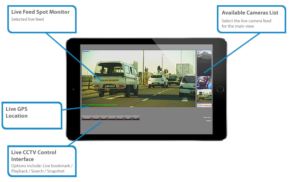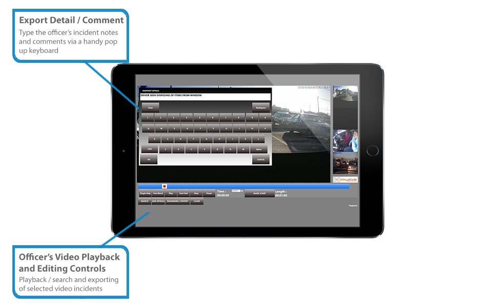 Vidi-Sync Patrol HD™ is our tablet touchscreen software interface that allows police officers to have local access to and interact with their in-car Mobile CCTV system.